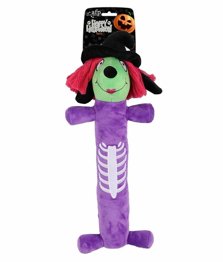 The “All For Paws Long Body Mummy Halloween Dog Toy” is a spooktacular addition to your pup’s toy collection. This playful and festive mummy-inspired dog toy features an elongated body that’s perfect for tugging and fetching fun. With its Halloween-themed design, it adds a touch of holiday spirit to playtime. Your furry friend will love this ghoulishly good toy that’s both cute and entertaining. Get ready for howling good times with your canine companion this Halloween!