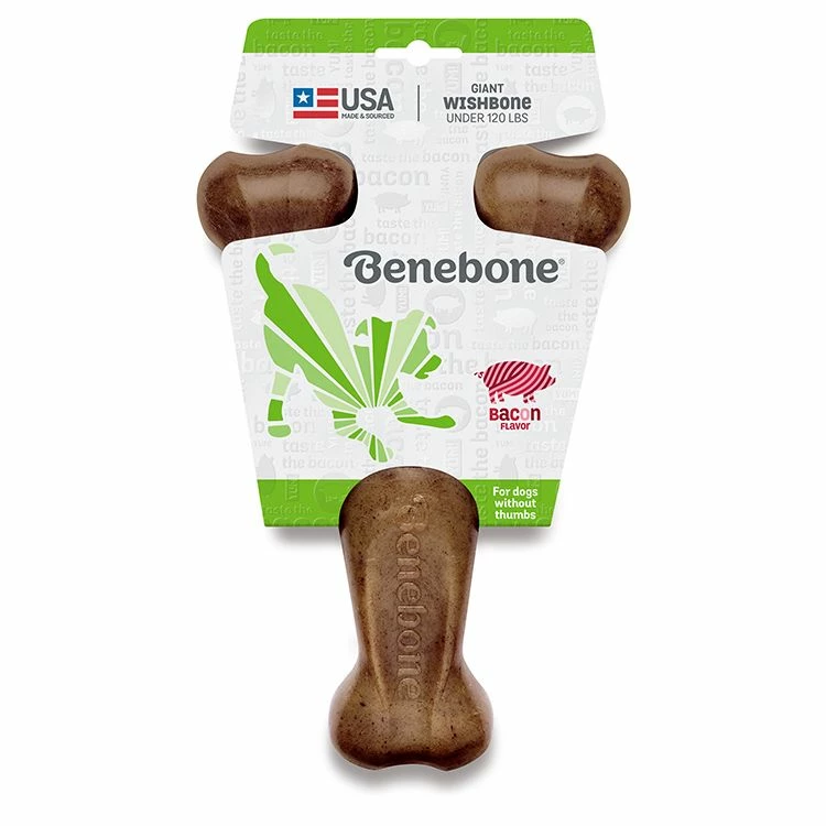 The Benebone Wishbone is our flagship. Since dogs don’t have thumbs, why give them a chew that you can pick up and they can’t? With real bacon, peanut and chicken infused all the way through, your dog’s wish is coming true.