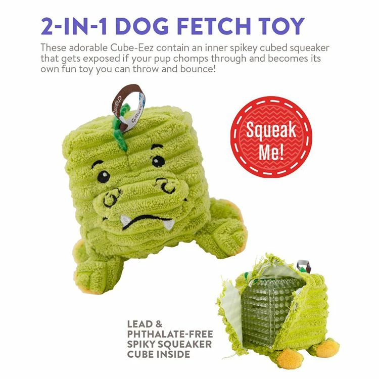 - 2-in-1 dog fetch toy:Charming outside, tough inside, these adorable Cube-Eez dog toys contain an inner spikey cubed squeaker that gets exposed if your pup chomps through and becomes its own fun toy you can throw and bounce!