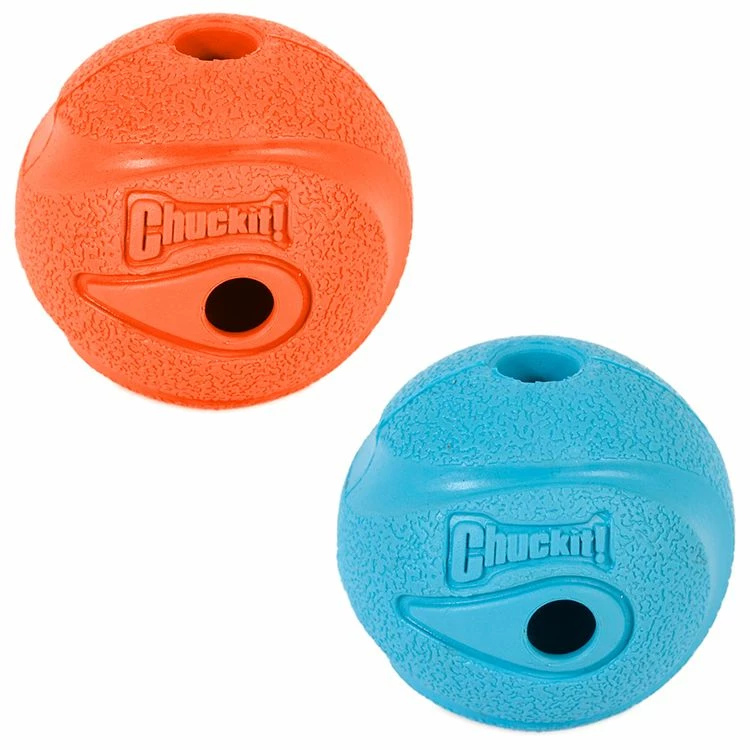 Ready, set, fetch! The Chuckit!® Whistler® keep the game of fetch interesting and challenging for your dog. Four holes in this high-bouncing rubber ball produce a whistle as it soars through the air to keep your dog interested and focused. The grip-able rubber ball is made just the right size to use with your Chuckit! Launcher. These high-bouncing balls are available in sizes small, medium, and large, with one and two-pack options.