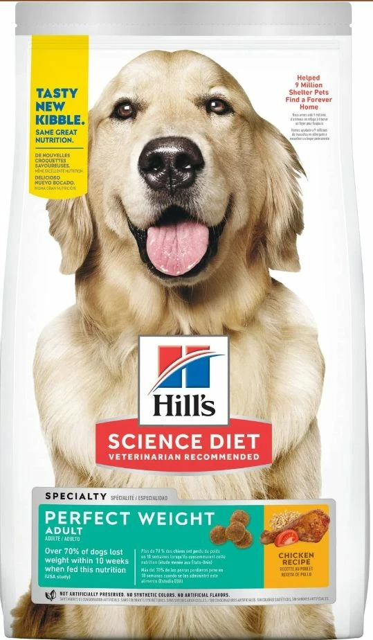 Putting your grown dog on a calorie restricted diet can be difficult for you and your canine companion. That’s why Hill’s Science Diet Perfect Weight Adult Dog Food provides delicious, breakthrough weight management nutrition that your full-grown dog can enjoy. With protein for lean muscle maintenance, and clinically proven results in just 10 weeks, this weight control dog food made with natural ingredients is the perfect addition to your adult dog’s bowl. This healthy weight dog food is formulated with decades of cutting-edge research to be a great-tasting meal your grown dog can truly enjoy!