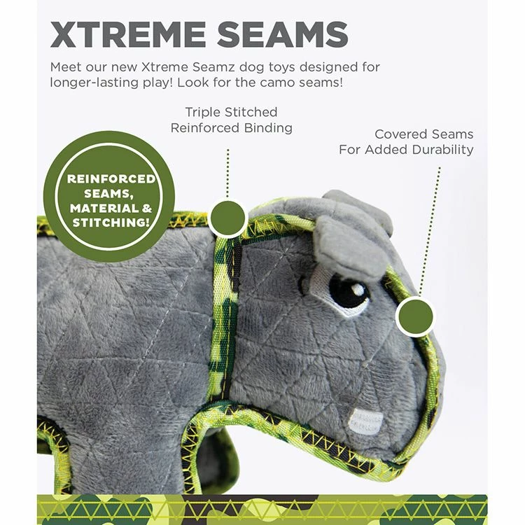 - our toughest toy yet:Meet our new Xtreme Seamz dog toys designed for longer-lasting play! Our 8 NEW animal shapes with camo binding come in 2 different sizes making them a great toy for any size dog and are machine washable!