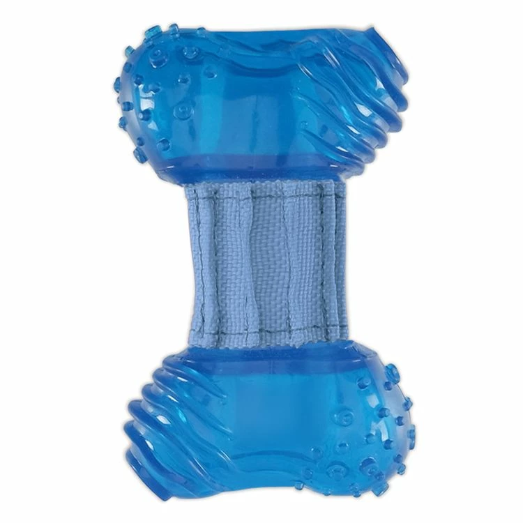 In addition to helping remove plaque and deep cleaning those hard to reach areas, the Chew & Clean includes a soothing pouch and treat pouch at either end. Fill the soothing pouch with water and freeze to provide relieve to teething puppies and dogs with sensitive gums.