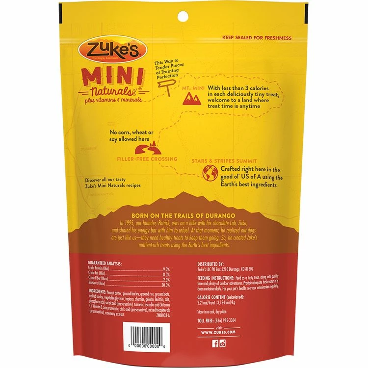 ![Zuke's Mini Naturals Peanut Butter & Oats Dog Treats [454g] 4 Zuke's Mini Naturals Peanut Butter & Oats Dog Treats [454g] - Image 2](https://www.mrpetsshopus.com/wp-content/uploads/2024/03/mini_naturals_pntbutter_back_454g_48203.webp)